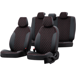 Araca Özel Üretim Oto Kılıfı-Deri-Siyah Kırmızı Dikişli