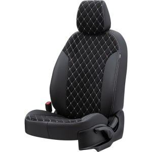 Araca Özel Üretim Oto Kılıfı-Siyah-Beyaz Dikişli-Kapitone-Tay tüyü