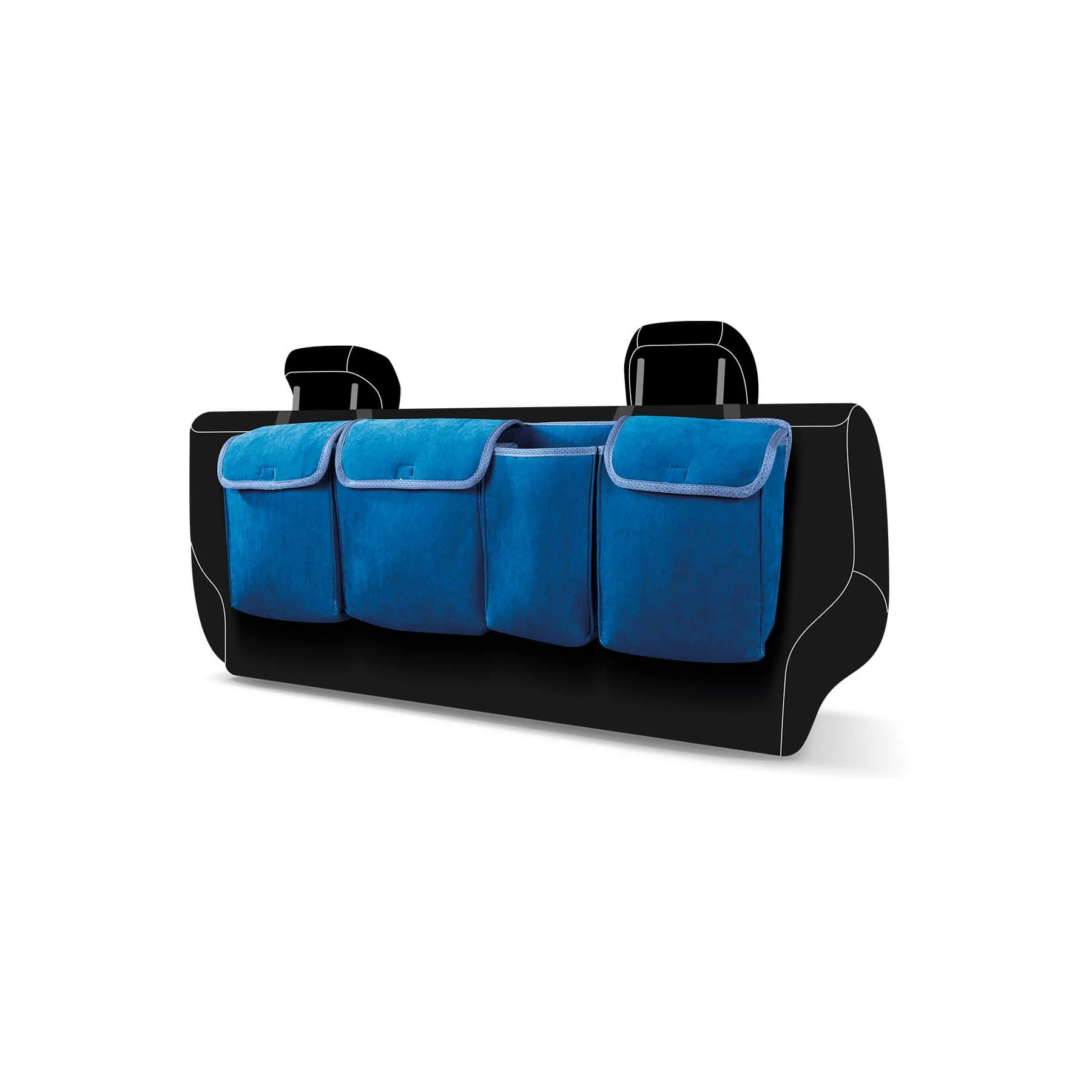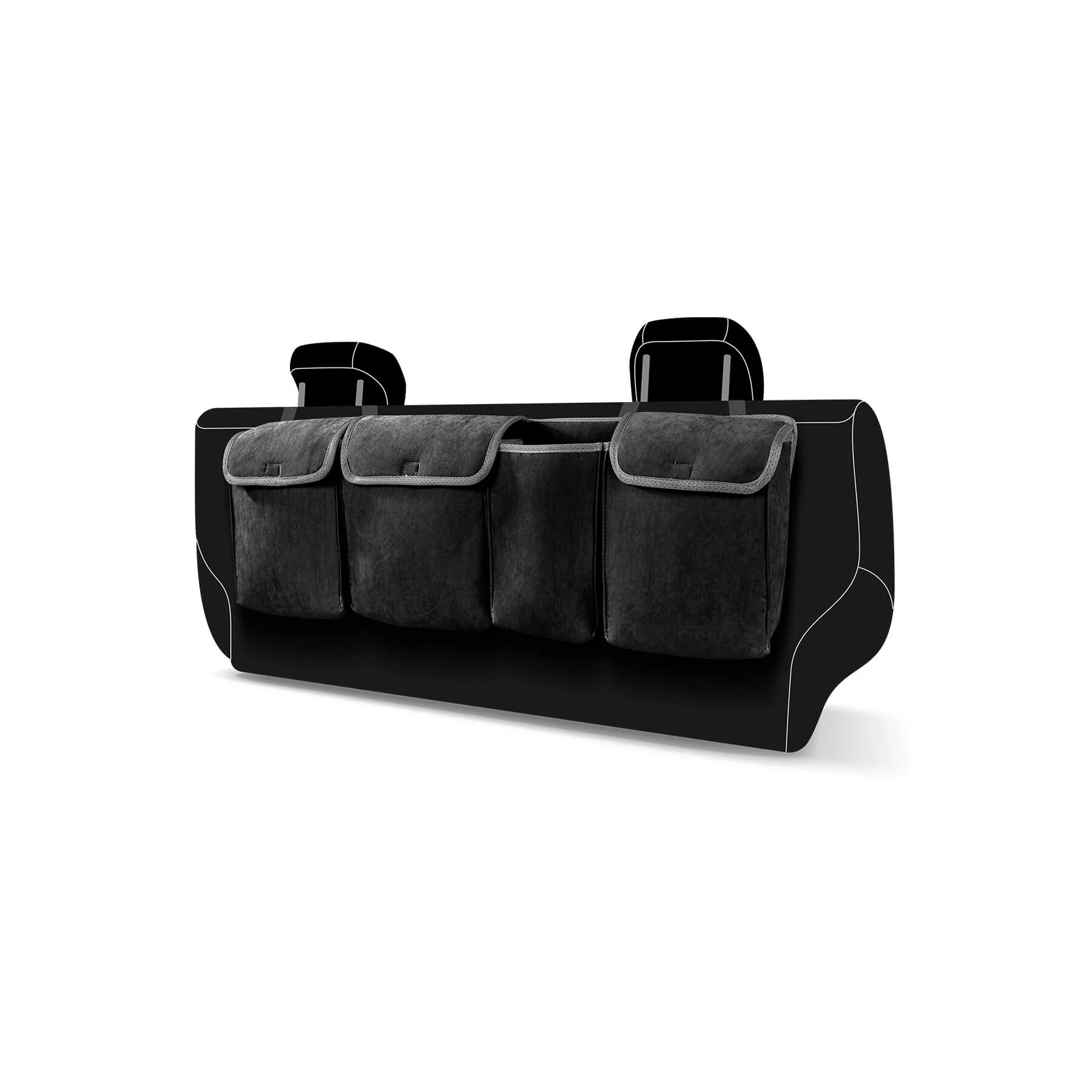 Tüm binek ve ticari araçlara uyumlu olarak tasarlanan Sitingo Araç İçi Koltuk Arkası Organizer ürünü, tamamıyla kaliteli VIP kumaştan üretilmiş olup kenarları biyelidir.