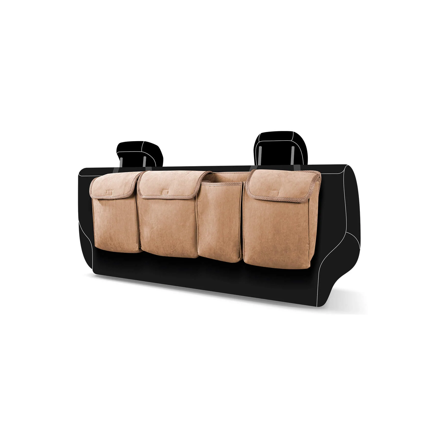 Özel ergonomik tasarımı ile aracın orijinalliği bozulmaz. Araç içi koltuk arkası eşya düzenleyici ürünü takmatik olup ön koltuklara lastik ile kolayca geçirilir.